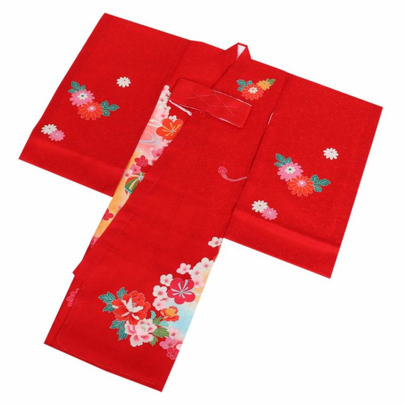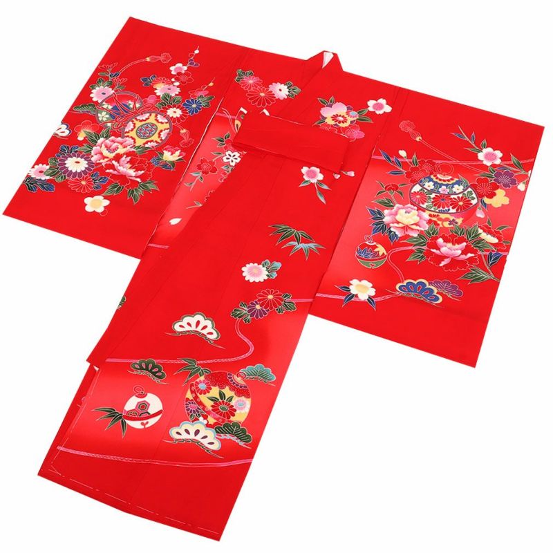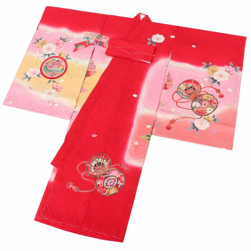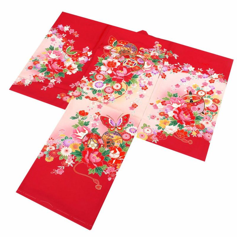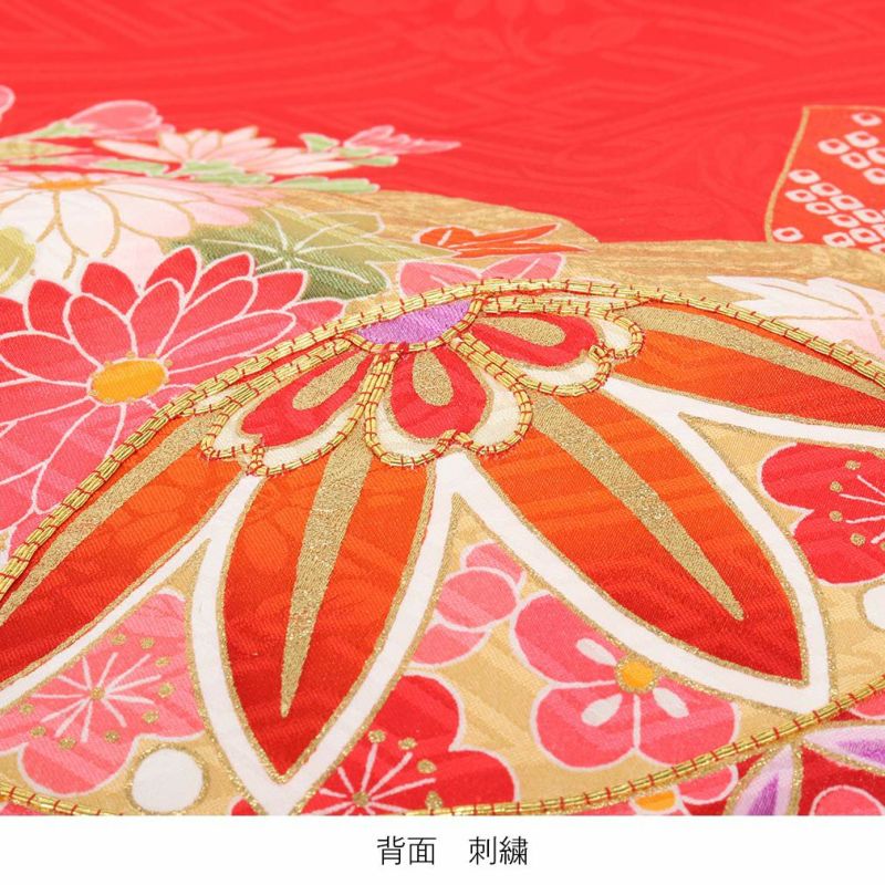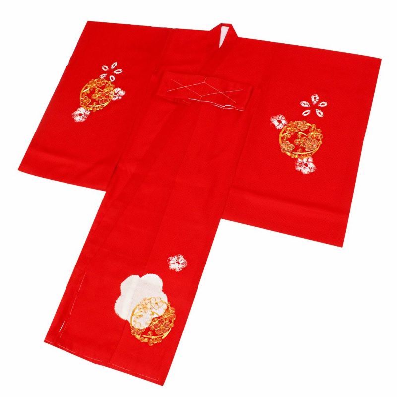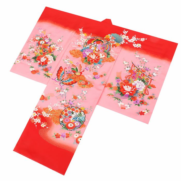 祝い着にふさわしい美しい正絹友禅 お宮参り 着物 女の子 産着 祝い着 赤 桃 橙 鞠 桜 梅 橘 雪輪 鹿の子 疋田 吉祥紋 正絹 友禅 金駒刺繍 刺繍 金彩 新品 日本製