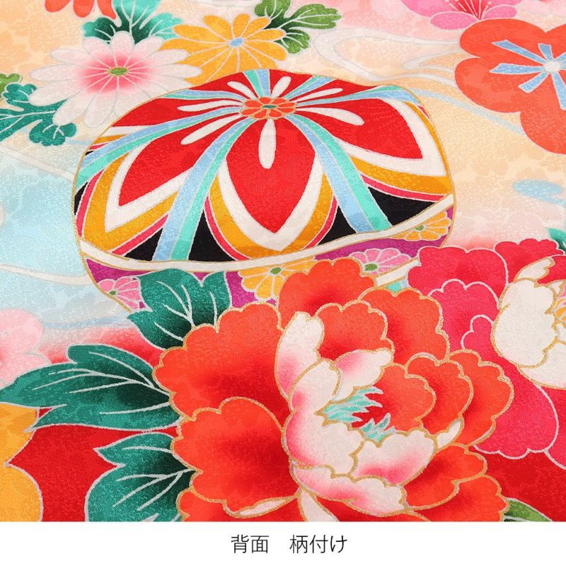 お宮参り 着物 女の子 産着 祝い着 薄橙 金 赤 桃 白 水色 毬 鞠 椿 亀甲 矢絣 青海波 芍薬 牡丹 正絹 のしめ 掛け着 初着 服装 赤ちゃん 販売 まり マリ 日本製