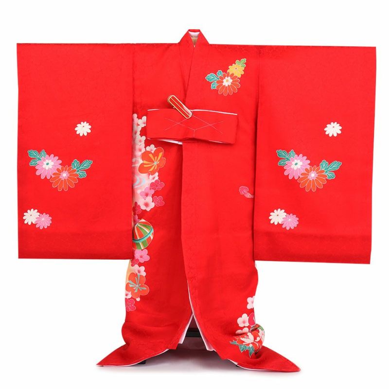 お宮参り 着物 女の子 産着 祝い着 赤 鼓 几帳 菊 牡丹 鞠 正絹 のしめ 掛け着 初着 服装 赤ちゃん 販売 日本製