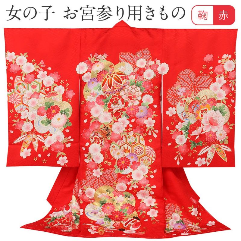 お宮参り 着物 女の子 産着 祝い着 赤 御所車 牡丹 まり 桜 正絹 のしめ 掛け着 鞠 毬 初着 服装 赤ちゃん 販売