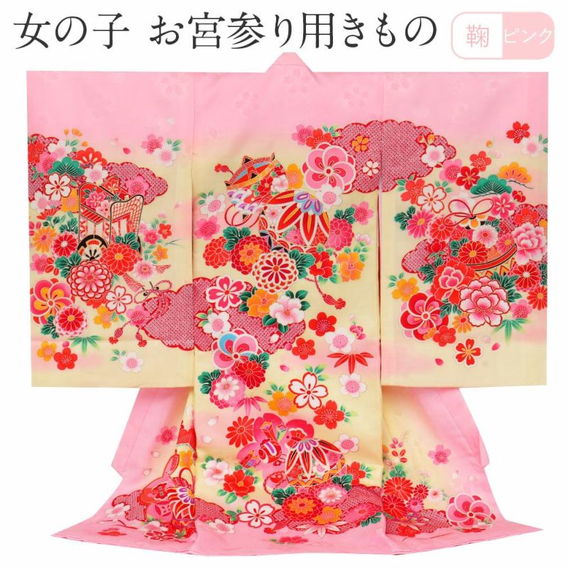 ≪在庫限り≫ お宮参り 女の子 着物 産着 服装 赤ちゃん 祝い着 お宮参り 着物 女の子 産着 祝い着 桃 ピンク 鞠 万寿菊 桜 梅 吉祥花 正絹 友禅 刺繍 新品 販売 購入
