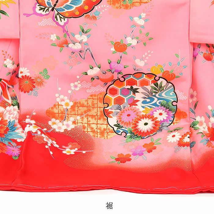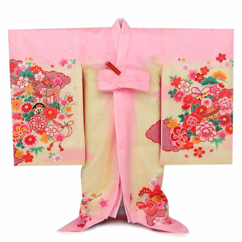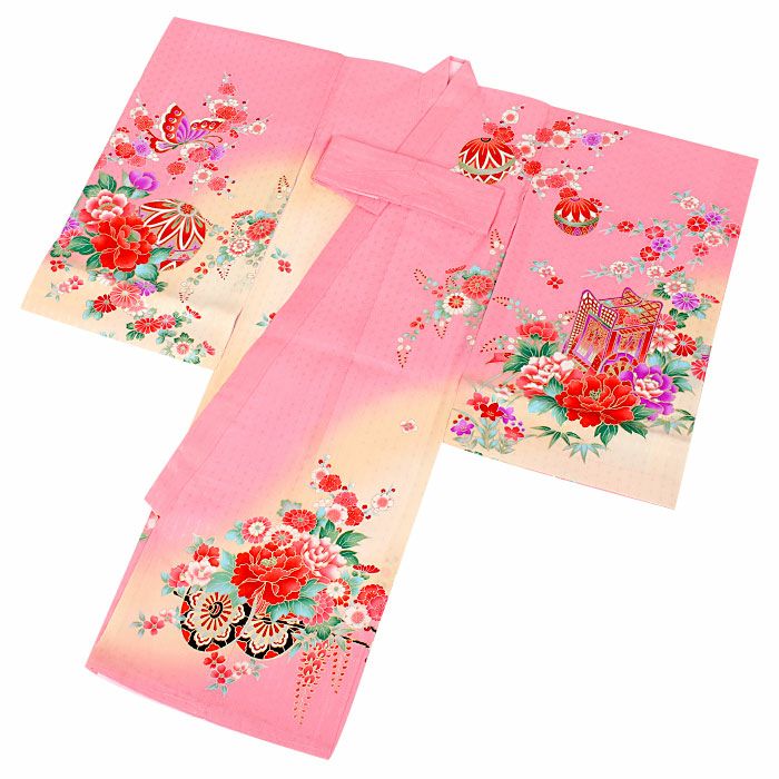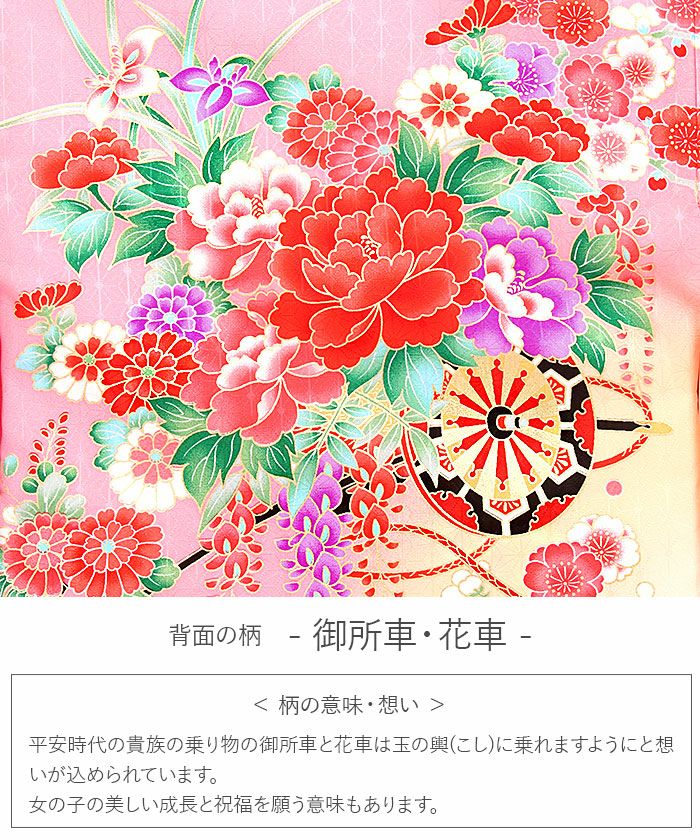≪在庫限り≫ 女の子 赤ちゃんのお宮参りの着物 産着 お宮参り 着物 女の子 産着 祝い着 桃 ピンク 黄 花車 牡丹 藤 あやめ 地紙文 鈴 蝶 正絹 友禅 金彩 新品