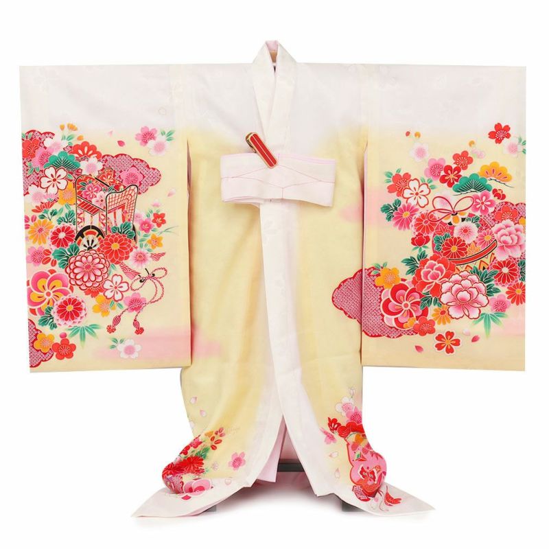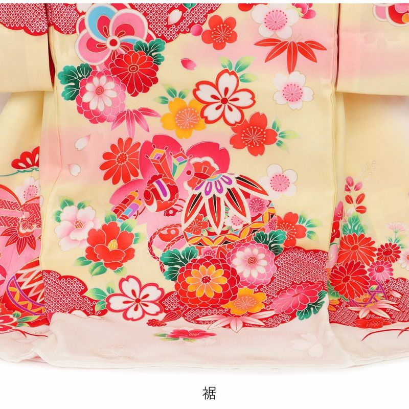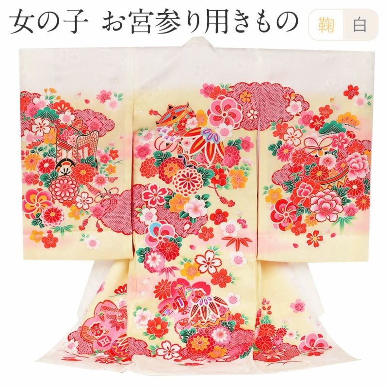 お宮参り 着物 女の子 産着 祝い着 淡黄 まり 御所車 宝尽くし 正絹 のしめ 掛け着 初着 鞠 毬 服装 赤ちゃん 販売