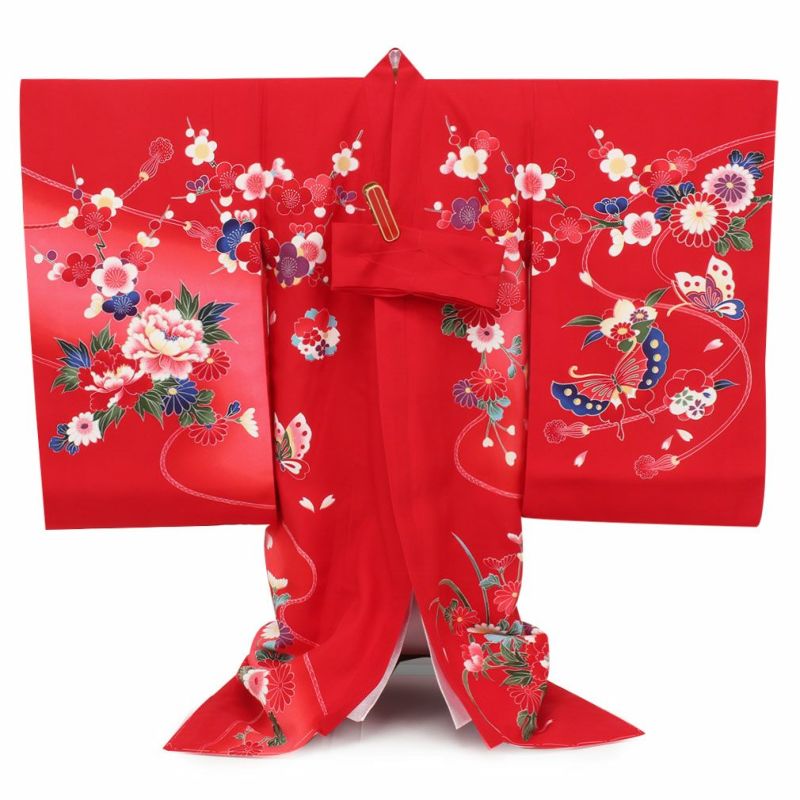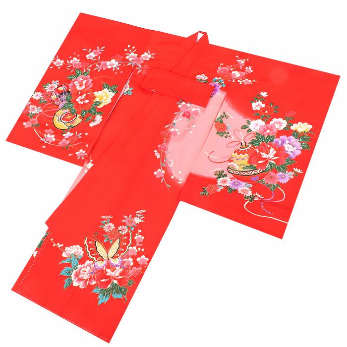 お宮参り 着物 女の子 産着 祝い着 赤 鈴 蝶 牡丹 正絹 のしめ 掛け着 初着 服装 赤ちゃん 販売