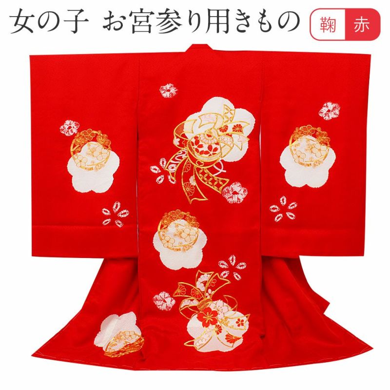 お宮参り 着物 女の子 産着 祝い着 赤 桃 花車 牡丹 雪輪 鞠 菊 桜 刺繍 正絹 のしめ 掛け着 初着 毬 服装 赤ちゃん 販売 日本製