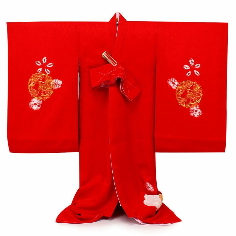 ≪在庫限り≫ お宮参り 女の子 着物 産着 服装 赤ちゃん 祝い着 お宮参り 着物 女の子 産着 祝い着 赤 桃 鈴 牡丹 熨斗 鹿の子 梅 桜 吉祥紋 正絹 友禅 金駒刺繍 刺繍 新品 販売 購入