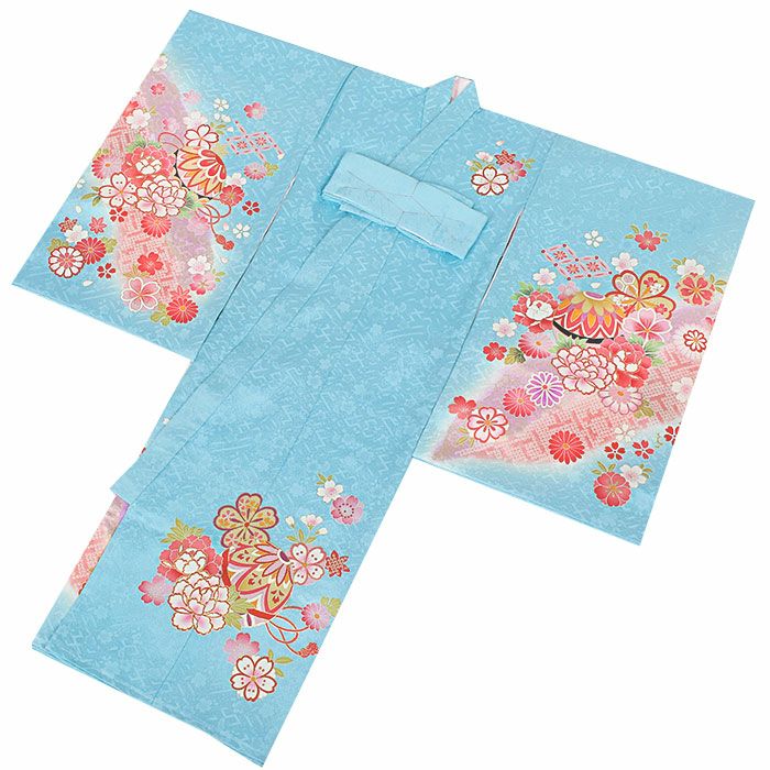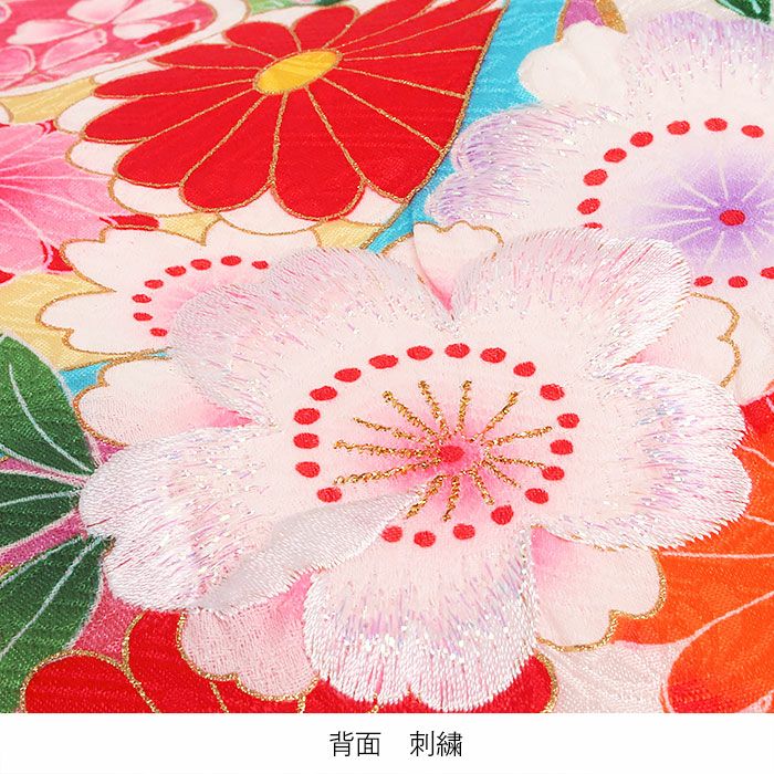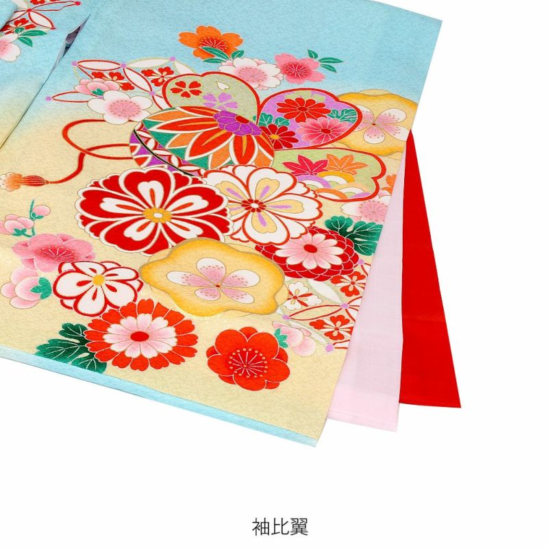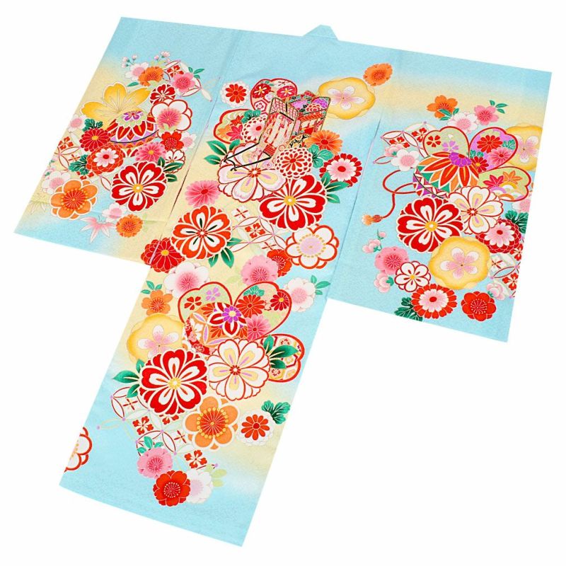 ≪在庫限り≫ 女の子 赤ちゃんのお宮参りの着物 産着 お宮参り 着物 女の子 産着 祝い着 水色 白 桃 鞠 宝尽くし紋 桜 椿 鹿の子 疋田風 正絹 友禅 刺繍 新品 日本製