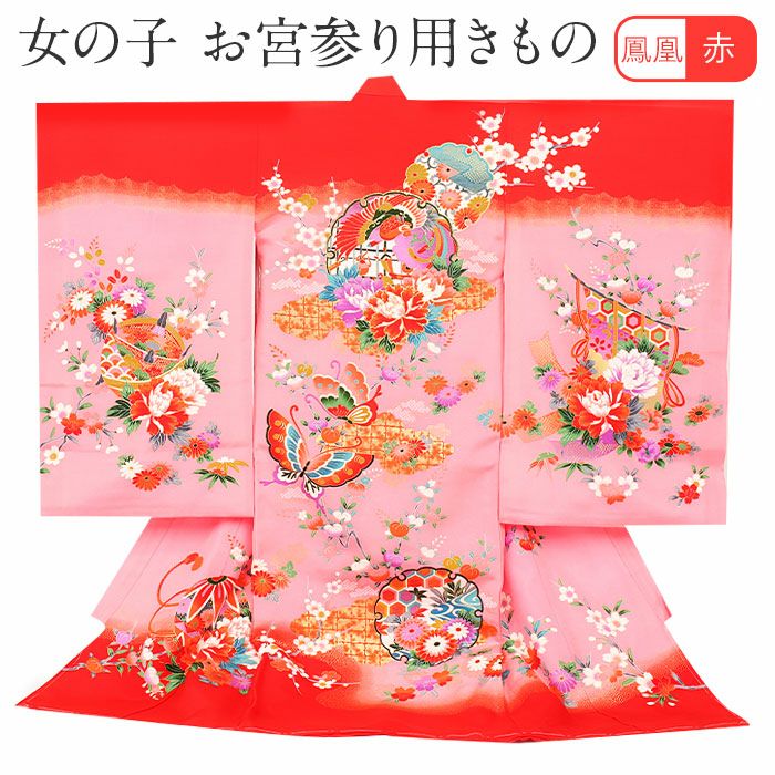 お宮参り 女の子 着物 産着 服装 赤ちゃん 祝い着 お宮参り 着物 女の子 産着 祝い着 赤 桃 鳳凰 牡丹 雪輪 蝶 鞠 几帳 籠目 梅 橘 吉祥紋 正絹 友禅 刺繍 新品