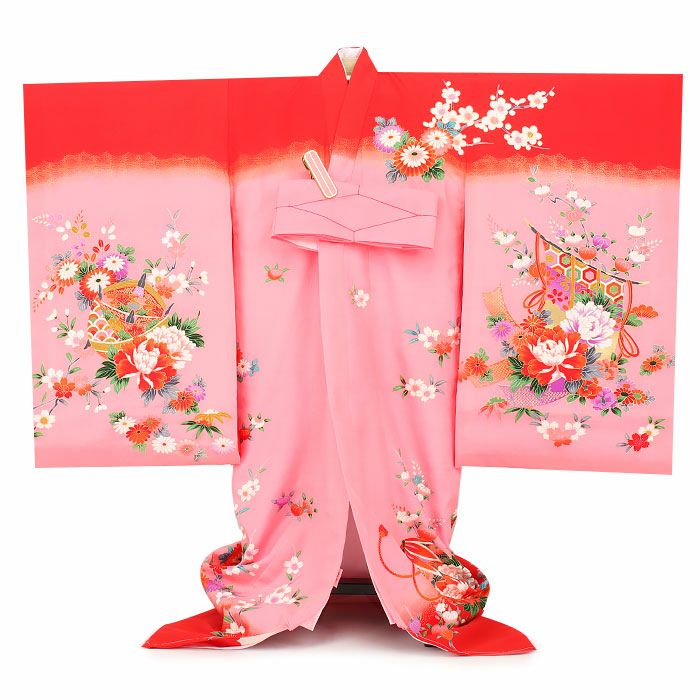 お宮参り 女の子 着物 産着 服装 赤ちゃん 祝い着 お宮参り 着物 女の子 産着 祝い着 赤 桃 扇 牡丹 几帳 糸巻 鞠 花瓶 花尽くし 籠目 橘 吉祥紋 正絹 友禅 刺繍 新品