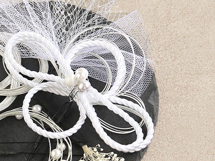 成人式や結婚式の華やかな振袖や卒業袴に 髪飾り 成人式 振袖用 成人用 Watmosphere ゴールド シルバー ワントーン シンプル 水引 ロープ チュール かすみ草 日本製